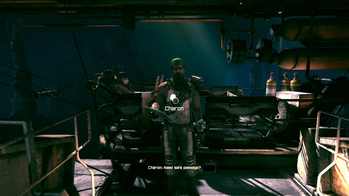 Charon is the name of the character who brings the protagonist back and forth from Subway Town and Wellspring. In Greek mythology, Charon is the ferry man who brought souls of the departed back and to Hades across the river Styx.