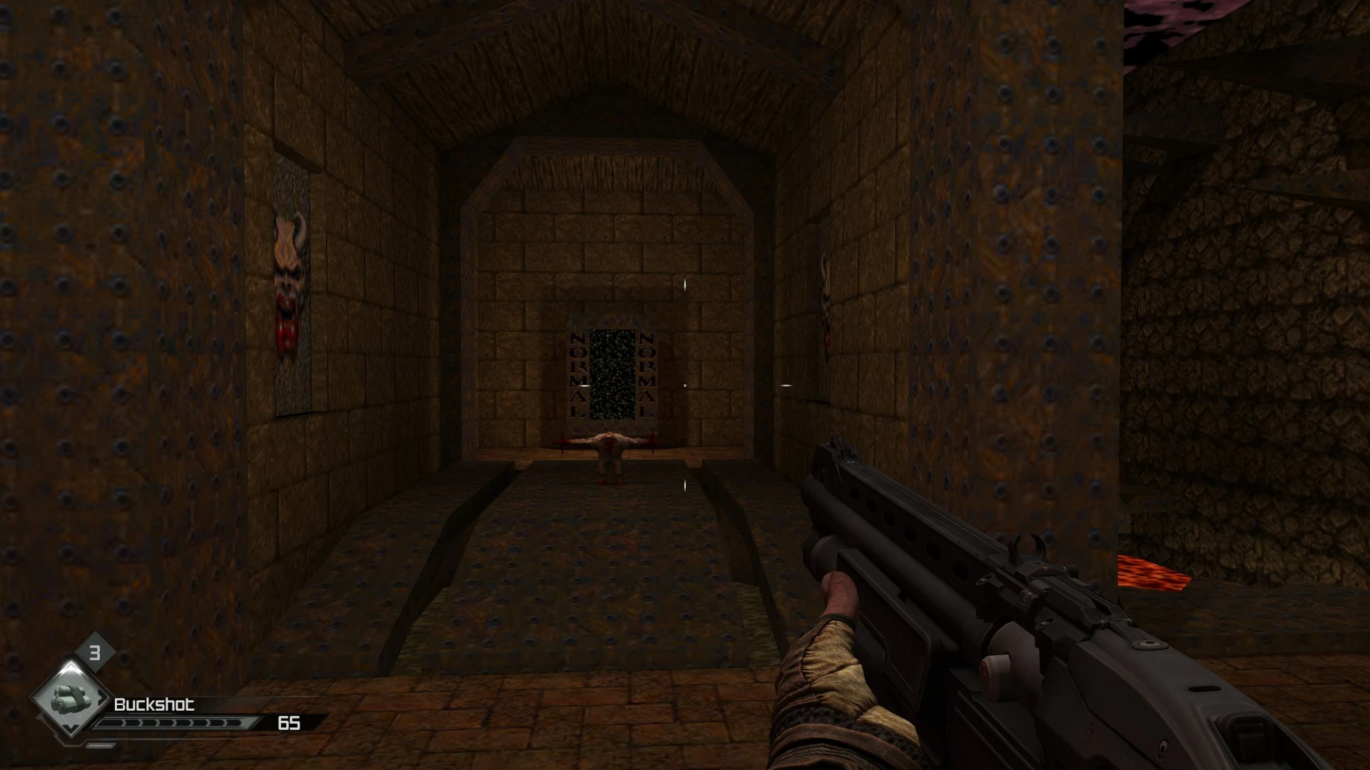 The Combat Shotgun iron sights form a figure that resembles Quake logo when the player aims down the sight.
