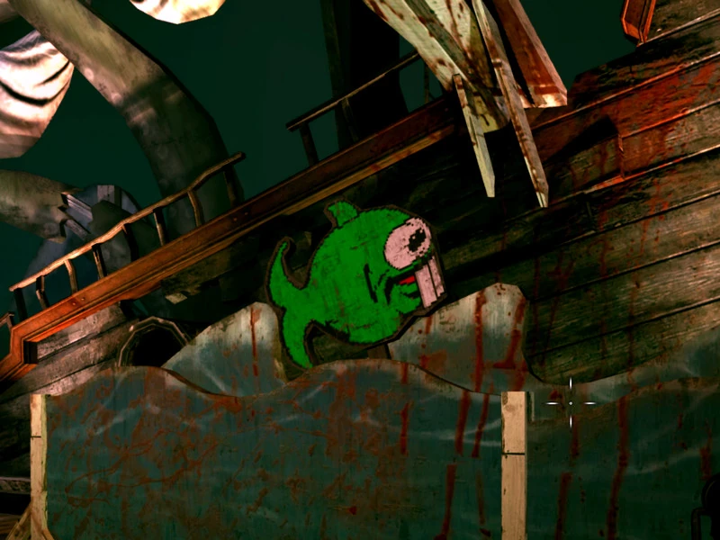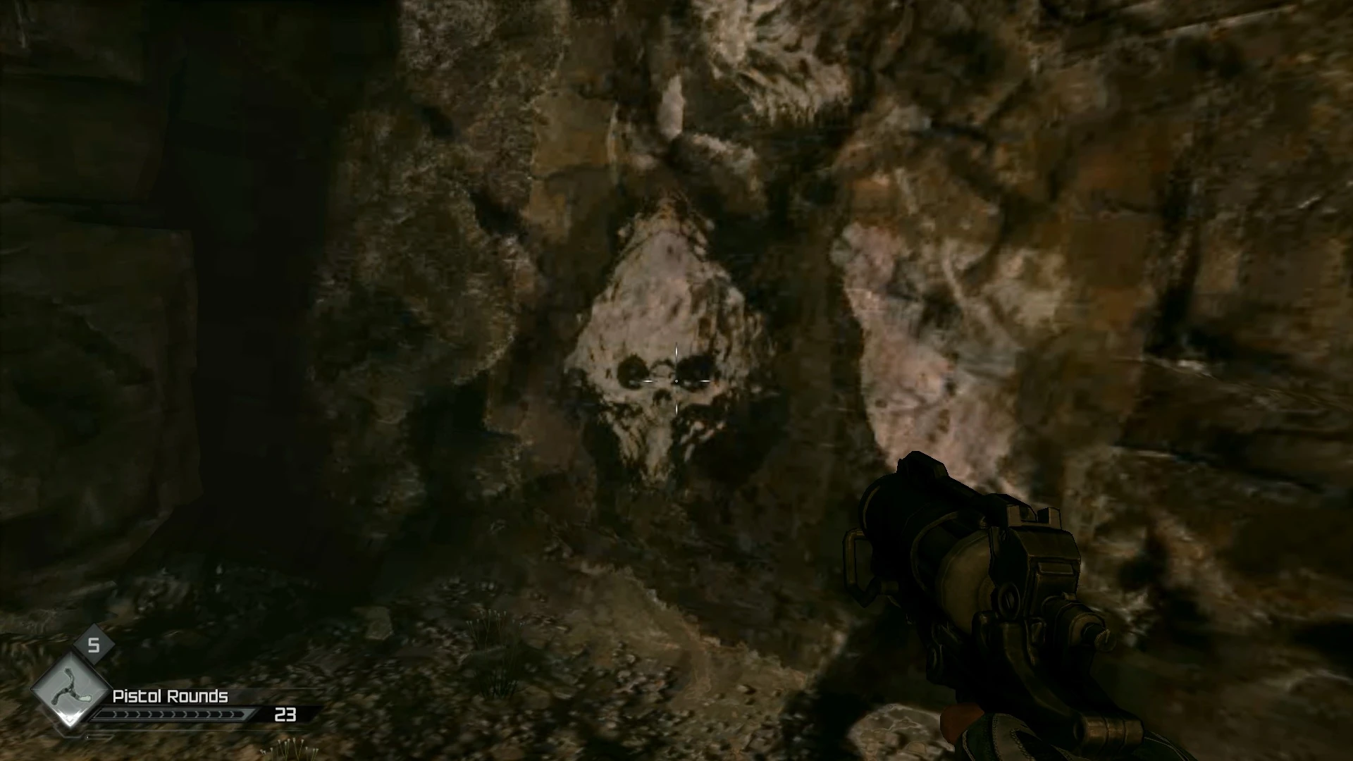 In Dead City, after picking up the Defibrillator, you will have to fight a couple of mutants and a slime mutant. You will go through an opening through the wall and down a flight of stairs until you reach a white sofa. Continue on your way and you will reach a room with a door that you have to go through to escape. Next to the door is a graffiti in red and white of the hellish face that looks exactly like the loading screen of the Hell Levels in Doom 3. You can also find the same Easter egg in the Ghost Hideout when moving through the caves. It appears in the face of the rocks of the cave tunnel.