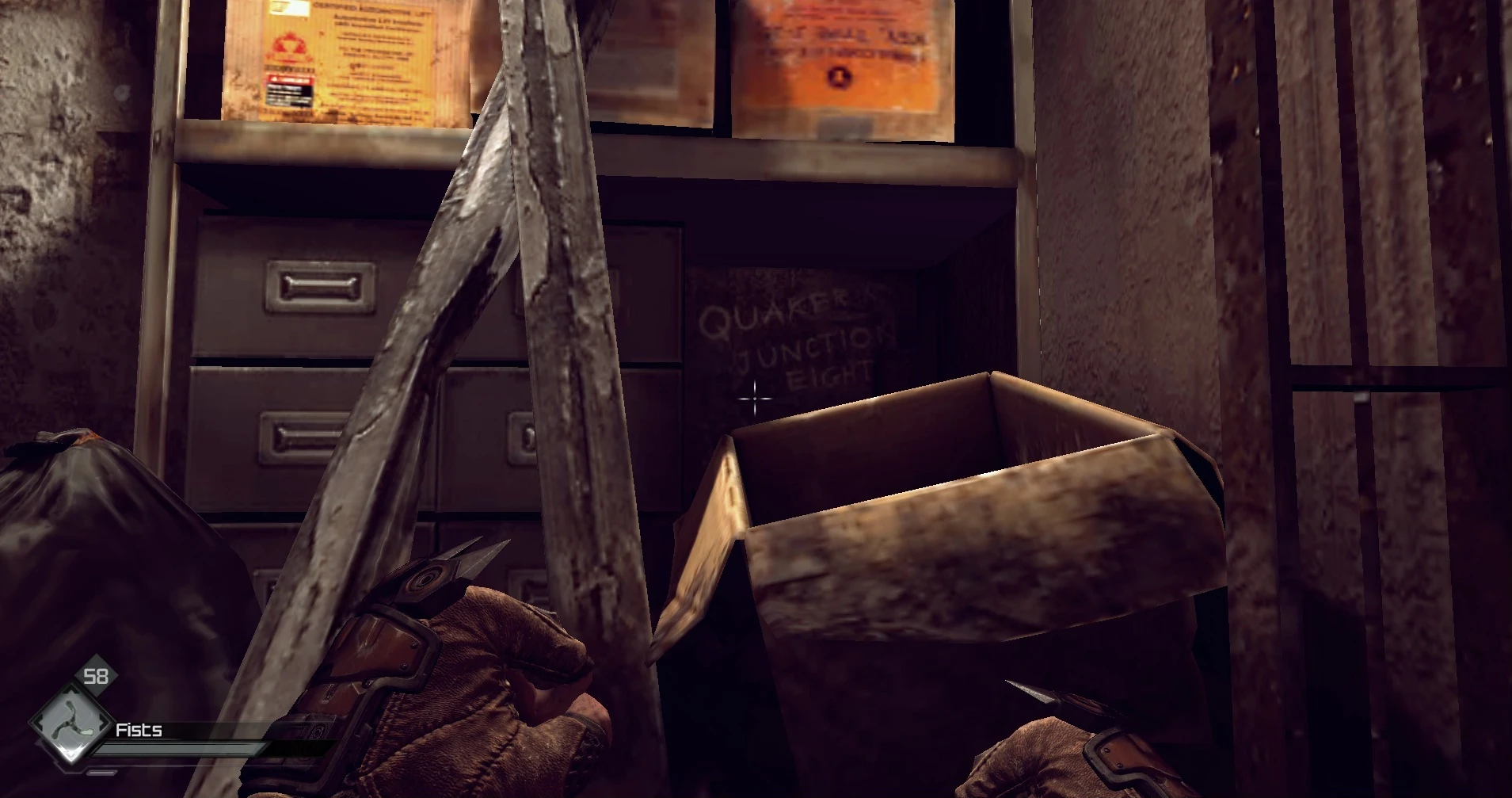 In Subway Town an Authority guard can be found standing next to a can. Approaching him will cause him to give an order to the protagonist: "Pick up that can!" After the player picks the can up the Authority guard will say, "That's a good boy". This is a reference to Half-Life 2 where a Civil Protection officer tells the players to do the same thing.