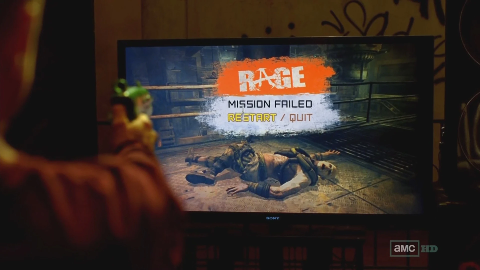 Tuco's grill can be found on a shelf in Sheriff Black's office. This is a reference to Hank keeping the grill as a trophy. This is likely because RAGE had been featured on the show; Jesse Pinkman can be seen playing the game on several occasions, albeit (incorrectly) with a light gun.